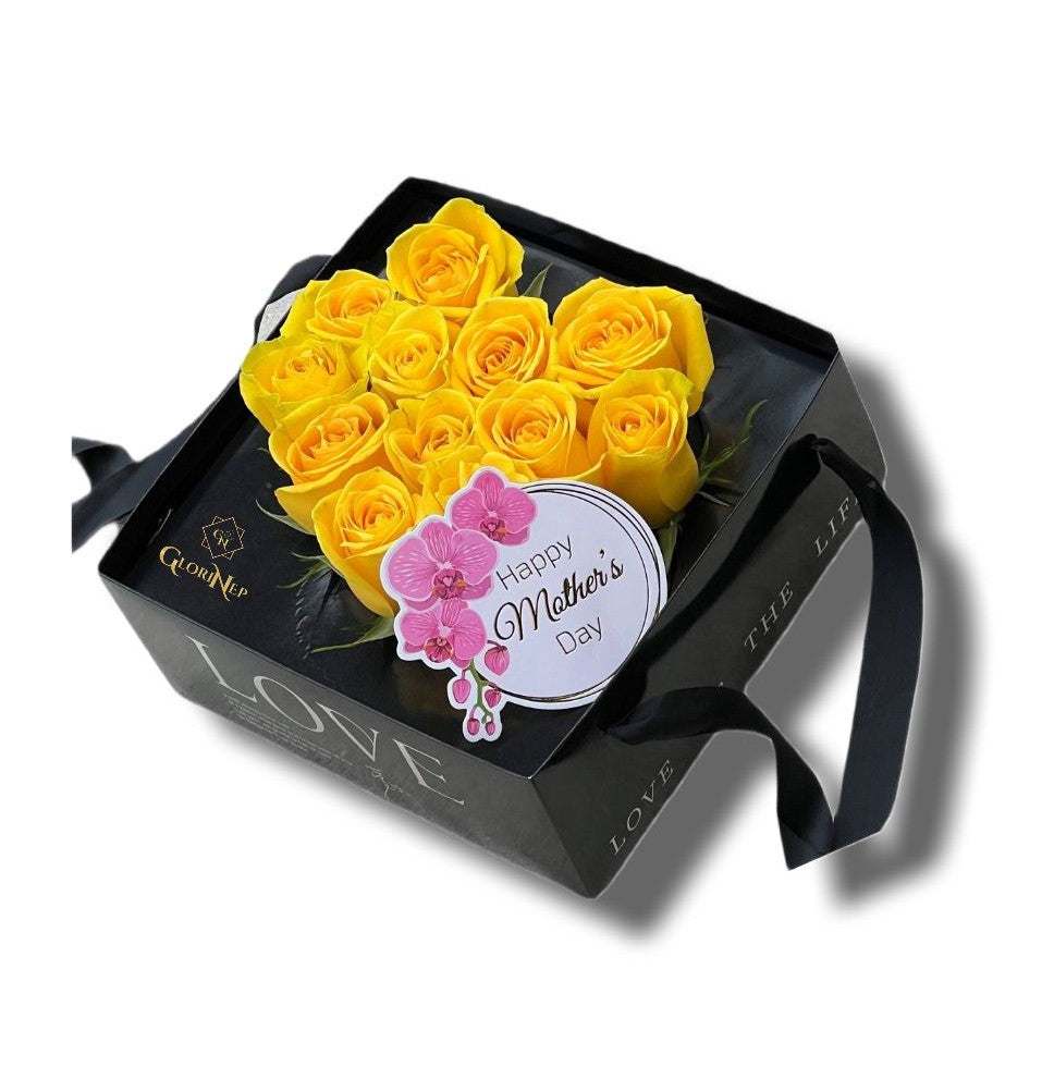 Box with Yelow roses .