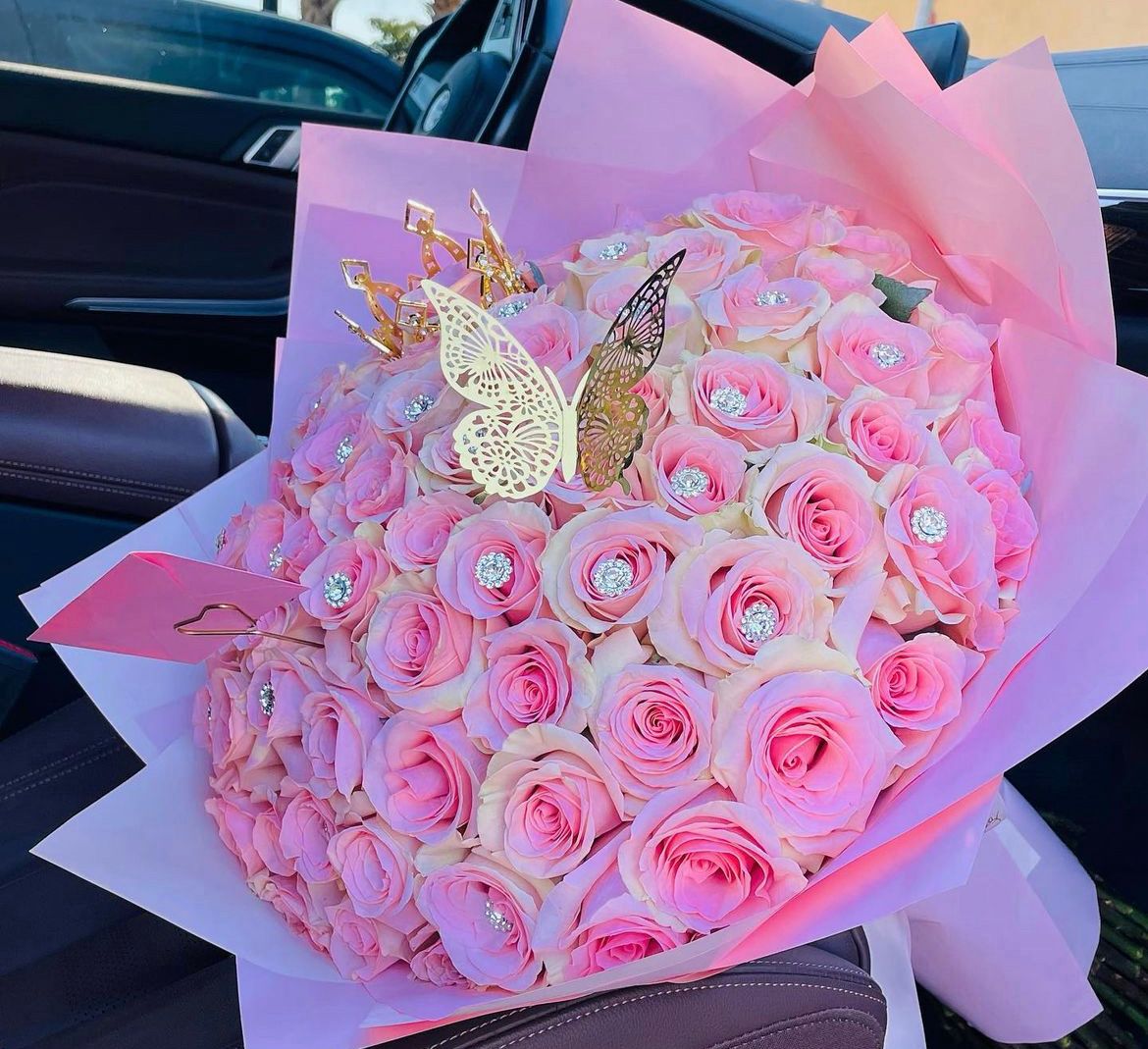 Ramo Buchon Pink Roses | Luxury Pink Roses Bouquet (25,50,75 or 100 Roses ) - Wellington, West Palm Beach & Palm Beach County